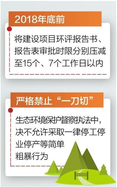 近日,河北省生態環境廳印發《深化生態環境領域“放管服”改革推進我省經濟高質量發展若干措施》(以下簡稱《措施》)提出,提高環評審批效率,2018年底前將建設項目環評報告書、報告表審批時限分別壓減至15個、7個工作日以內;嚴格禁止“一刀切”,生態環境保護督察執法中,決不允許采取一律停工停業停產等簡單粗暴行為。