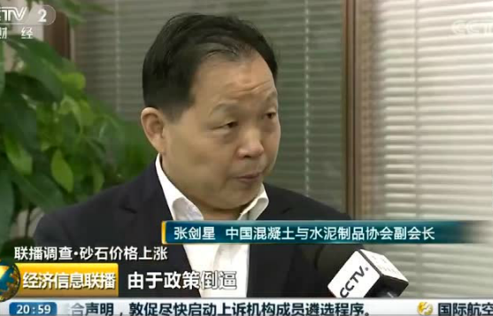 日前,央視財經頻道對砂石價格上漲展開調查報道,并就機制砂的未來發展采訪了南方水泥常務執行副總裁、中國混凝土與水泥制品協會副會長張劍星。
