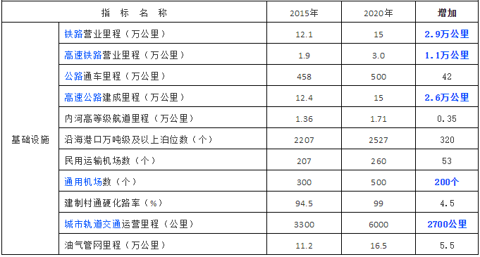 “十三五”基礎設施發展目標