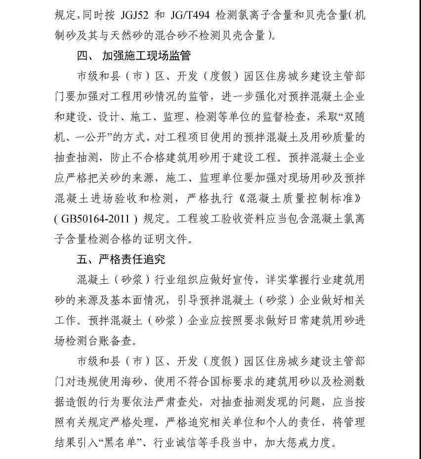 各市縣住建部門加強對砂和拌合物質量的抽查抽測,至不合格建筑用砂用于建設工程;