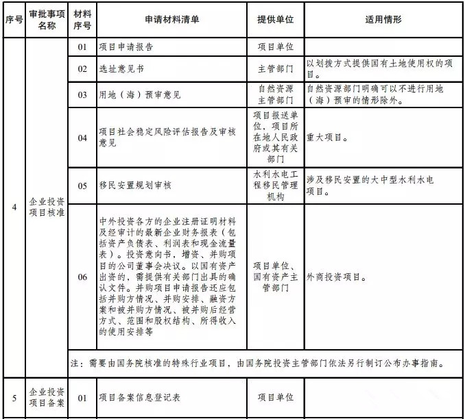 六、本通知中的審批管理事項和申請材料清單實行動態管理,投資審批制度改革中,事項有調整的將及時修訂和公布。