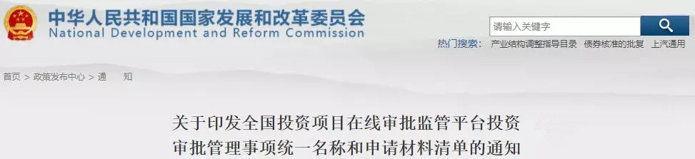 日前,發改委等15部門聯合發布《關于印發投資項目在線審批監管平臺投資審批管理事項統一名稱和申請材料清單的通知》(以下簡稱《通知》)。《通知》明確了《投資項目在線審批監管平臺投資審批管理事項統一名稱清單(2018年版)》和《投資項目在線審批監管平臺投資審批管理事項申請材料清單(2018年版)》(以下合稱《清單》)。