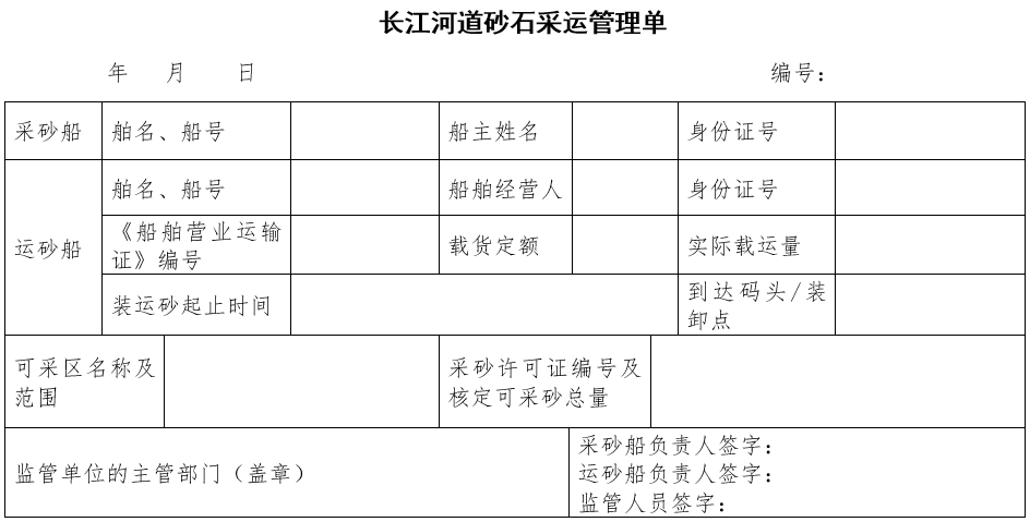 對依法辦理了采砂許可證的可采區,負責采砂現場監管的主管部門,應根據運砂船舶每艘次實際承運情況,出具砂石采運管理單。