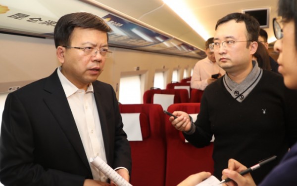 住陜全國政協委員張義光在赴京的列車上接受記者采訪。