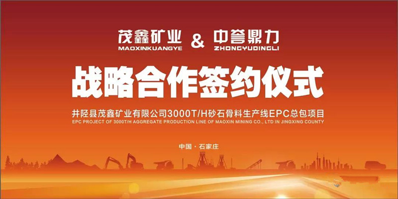 3月22日下午,中譽鼎力與茂鑫礦業戰略合作簽約儀式在河北賓館正式舉行。雙方將共同打造井陘縣茂鑫礦業有限公司3000t/h砂石骨料生產線項目,助力井陘地區綠色礦山建設和露天礦山綜合整治工作的順利進行。
