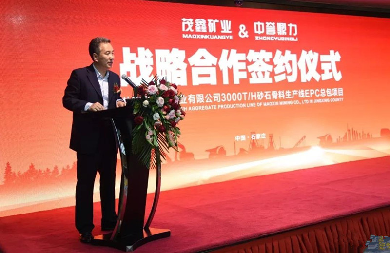 河南中譽鼎力智能裝備有限公司董事長張治民在致辭中表示,今天這個儀式,標志著兩家企業的戰略合作正式啟動。中譽鼎力非常有信心,一定會把茂鑫礦業時產3000噸生產線建成當地環保生產線標桿。今天簽約儀式完成以后,明天項目各部門就會進入工地開始前期各項工作。中譽鼎力作為項目的EPC總承包商,會在最短的時間內,把優質、環保、智能的項目呈現在大家面前。