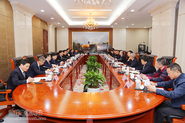 趙時運感謝海螺的熱情接待,簡要介紹了建工集團基本情況,詳細介紹了施工建設、房地產開發、資產管理等主要業務開展情況和優勢。他說,海螺規模大、業態優勢多,建工與海螺一直保持著良好暢通的合作關系,希望可以與海螺有更深層次的交流,學習借鑒海螺各方面經驗,拓寬合作領域,實現雙贏。