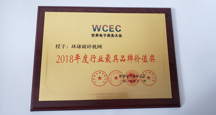破碎機(jī)行業(yè)第一媒體-環(huán)球破碎機(jī)網(wǎng)憑借在破碎機(jī)行業(yè)電子商務(wù)領(lǐng)域中出色的表現(xiàn)榮獲“WCEC世界電子商務(wù)大會2018年度行業(yè)最具品牌價(jià)值獎”。
