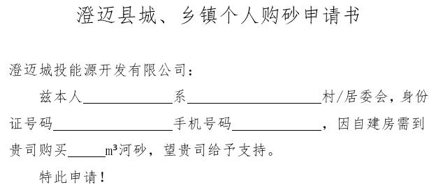 日前,海南澄邁個人購買河砂審批程序已經制定完成,個人購砂申請程序如下: