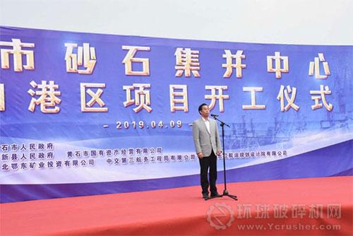 4月9日上午,黃石市砂石集并中心黃顙口港區項目正式開工。黃石市副市長黃荊國出席開工儀式宣布項目開工,并與到場嘉賓一同為項目奠基培土。