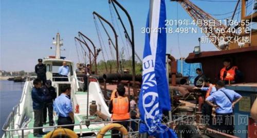 4月8日,武漢市水務局和孝感市水利和湖泊局在漢江漢川與武漢市交界水域,開展聯合執法,嚴厲查處和打擊非法采砂違法行為。