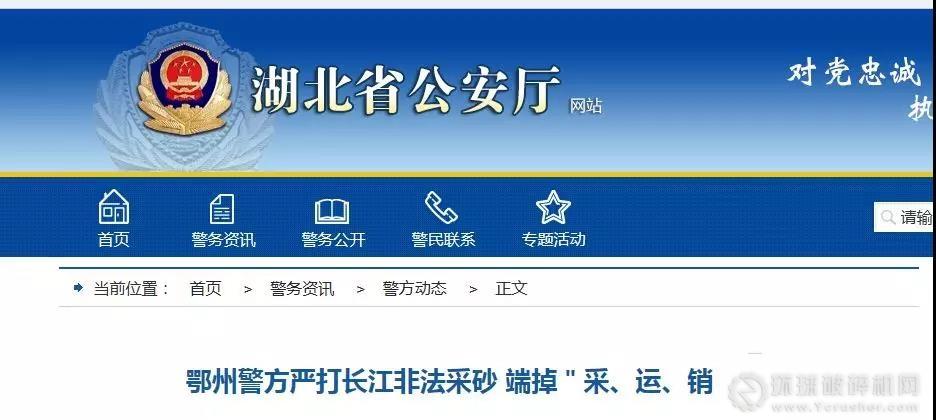 據湖北省公安廳報道,湖北省鄂州警方嚴厲打擊非法采砂和超載運輸,于近日成功打掉一個“采、運、銷”結合的大型盜采江砂團伙。