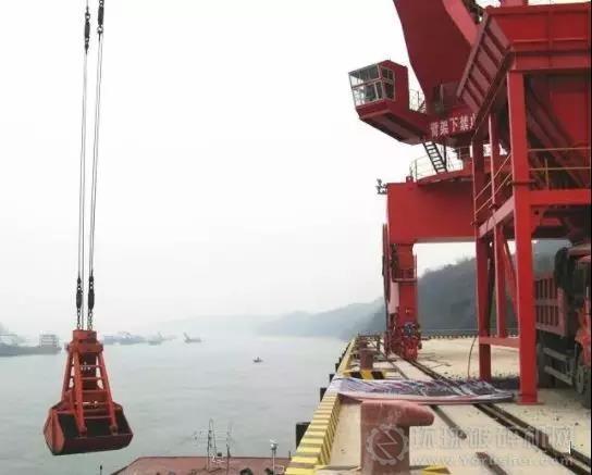砂石的船舶停靠在新堤綜合碼頭1#泊位,一臺起重機伸出“手臂”,抓起砂石裝到碼頭上等待的大貨車上。10分鐘后,大貨車駛向正在施工的江北高速公路。