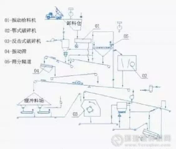 (2)顎式破碎機+反擊式破碎機系統(tǒng)。