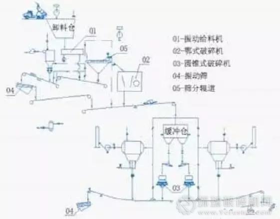 (3)顎式破碎機+圓錐式破碎機系統(tǒng)。