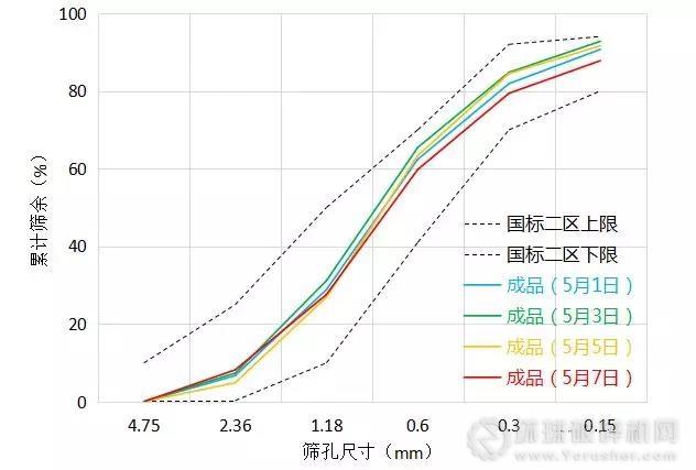 成品砂質(zhì)量:符合《建設(shè)用砂》2區(qū)中砂和《高性能混凝土用骨料》I級砂標準