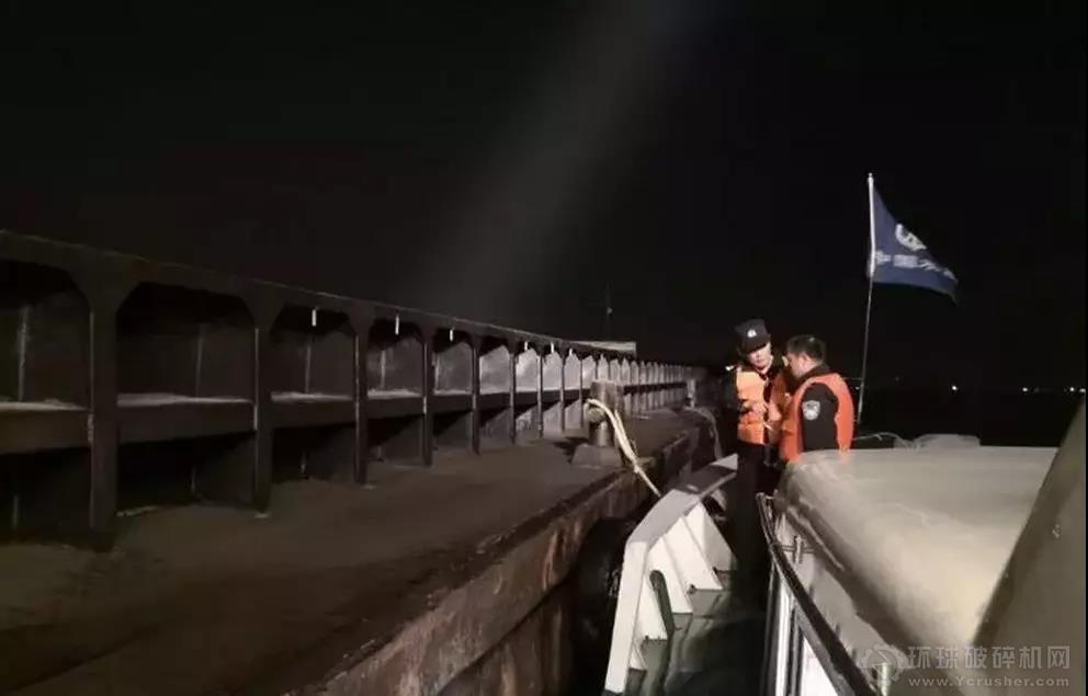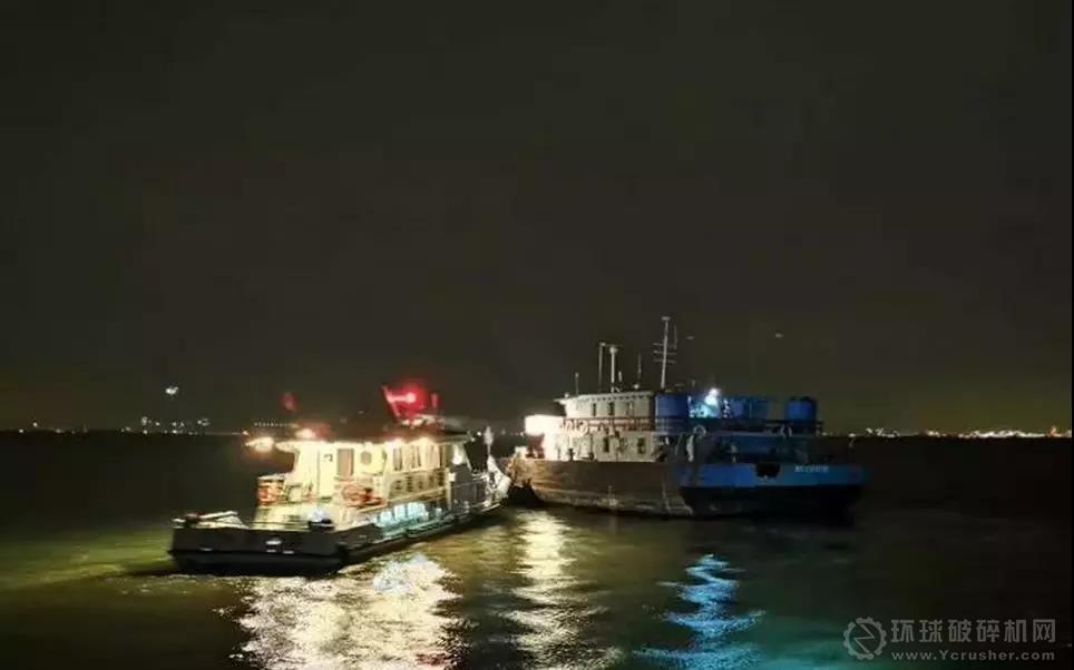 當晚23時許,執法人員巡邏至長江張家港段四干河附近水域時,發現江面上有兩艘船在非靠泊區域熄燈停留,疑似進行采砂作業。發現這一情況后,執法人員開動執法艇向可疑船舶靠近,進行突擊檢查。在巨大的轟鳴聲中,執法人員確認嫌疑船只正在采砂。執法人員迅速控制兩艘船只,并勒令船上人員停止違法行為。