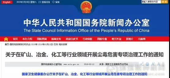 近日,國家衛生健康委辦公廳發布《國家衛生健康委辦公廳關于在礦山、冶金、化工等行業領域開展塵毒危害專項治理工作的通知》(以下簡稱《通知》),決定在礦山、冶金和化工等重點行業領域深入開展塵毒危害專項治理工作。《通知》規定了治理時間和步驟:(一)安排部署階段(2019年4—7月);(二)治理整改階段(2019年8月—2020年7月);(三)組織評估階段(2020年8—10月);(四)全面總結階段(2020年11月)。