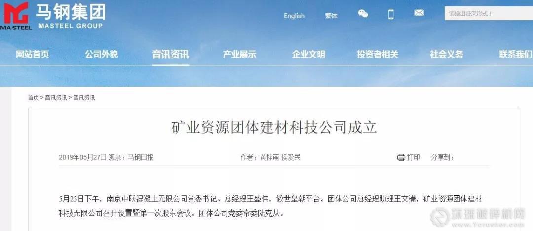 安徽馬鋼礦業資源集團建材科技有限公司是由馬鋼礦業公司與中國建材集團下屬子公司-南京中聯混凝土有限公司、南京凱盛國際工程有限公司共同出資注冊成立。注冊資本5000萬元,該公司為馬鋼礦業公司控股子公司。