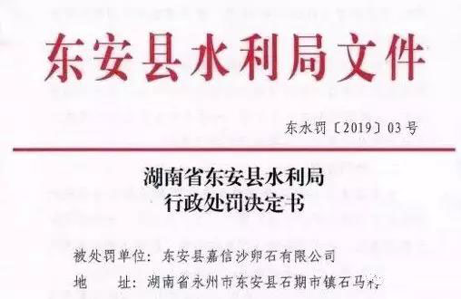 2019年4月8日,永州市水利局水政監察支隊再次去暗訪時發現東安縣嘉信沙卵石有限公司建河砂場仍有3艘運砂船在運砂,1艘采砂船在非法挖砂。4月9日東安縣水利局執法人員對該公司采砂、運輸船只進行了查封。