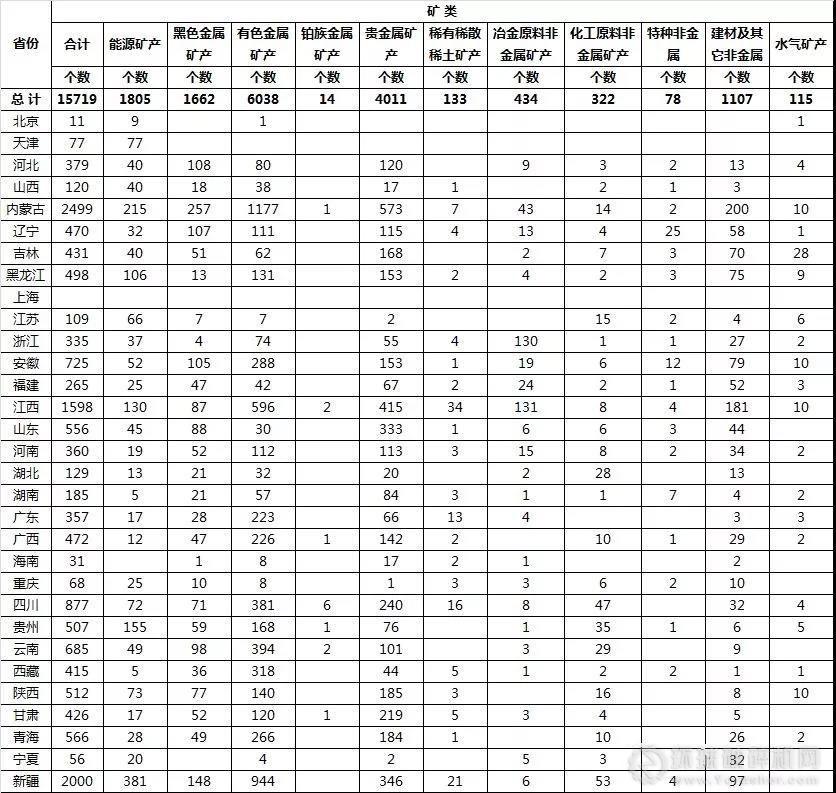 從地區分布看:主要分布在西部地區,探礦權數量最多的5個省份分別是:內蒙古(2499個)、新疆(2000個)、江西(1598個)、四川(877個)和安徽(725個), 5省(區)探礦權總數占全國的49.0%。