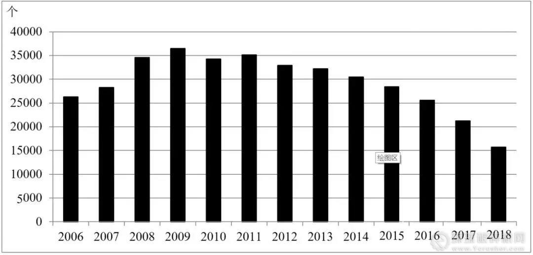 圖5 2006—2018年全國非油氣探礦權數量對比圖