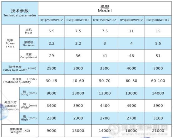 研制完全智能一體化帶式濃縮壓濾機的設計參數;采用可編程序控制器進行污泥濃縮脫水一體化帶式壓濾機的自動控制,同時有更高的污泥處理量,其主要的技術特點有: