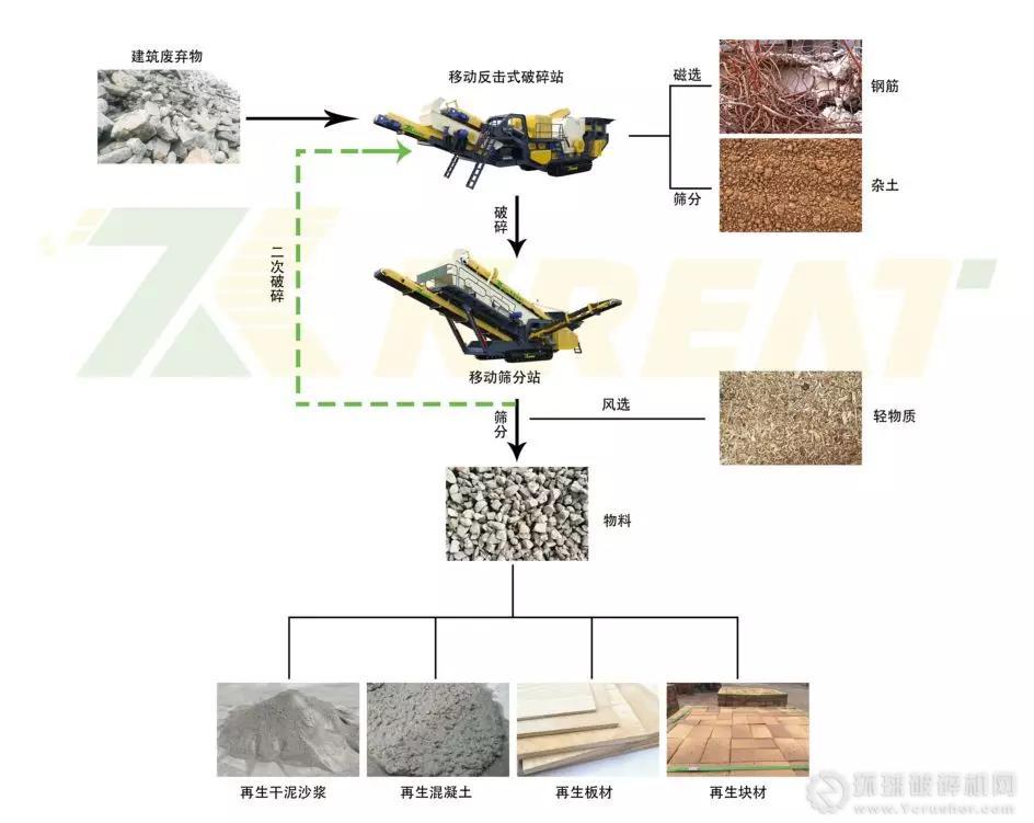 建筑垃圾可用專業(yè)設(shè)備通過除鐵、風(fēng)選、破碎、篩分等多道工序后,大多可加工成再生資源重新循環(huán)到生產(chǎn)中。