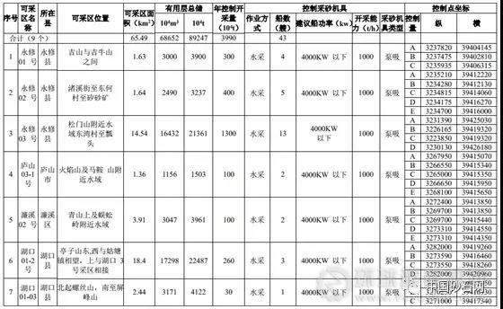 (1)根據《江西省鄱陽湖采砂規劃報告(2019~2023)》,鄱陽湖區采砂采取“統一管理、統一規劃、分區逐年開采”的開采模式。