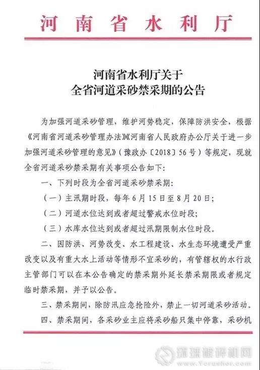 采砂禁采期的公告》,要求主汛期(6月15日至8月20日)禁止一切河道采砂活動。