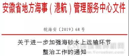 近期,安徽省海事下發《關于進一步加強海砂水上運輸環節整治工作的通知》。要求: