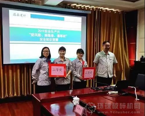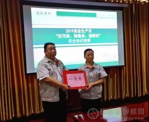 比賽緊張、激烈、有序,各位參賽選手精神飽滿、沉著應對,充分展示了邢臺蘊鼎建材員工的安全素養,精彩的答題不時贏得現場職工的陣陣掌聲。經過激烈的角逐,骨料事業部二隊取得本次競賽的第一名,