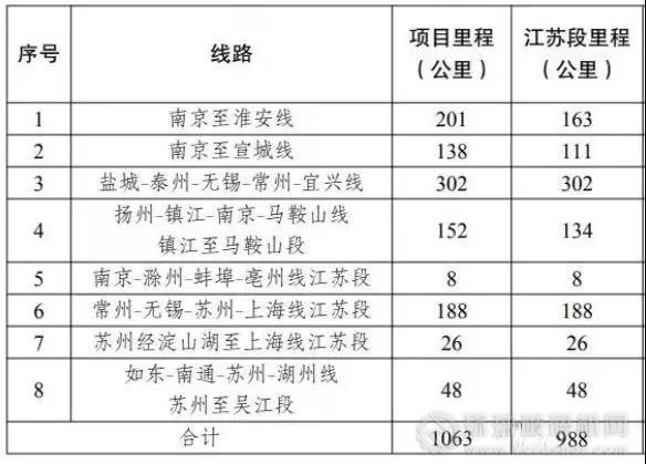 江蘇省沿江城市群城際鐵路建設規劃近期建設項目表
