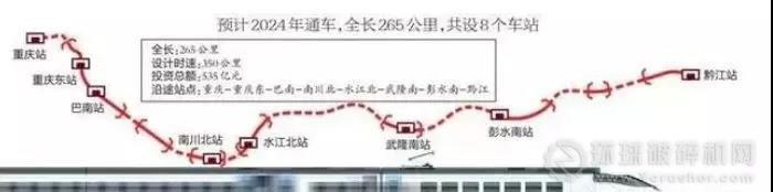 主要建設線路起自重慶站,經巴南、南川、武隆、彭水,終至黔江站,正線全長265公里,設站8座,其中新建6座。同步建設重慶東動車所動車出入段線、重慶樞紐東環聯絡線。項目投資估算總額為535億元,本項目由渝萬鐵路公司作為項目業主負責項目實施,項目建設工期5年半。