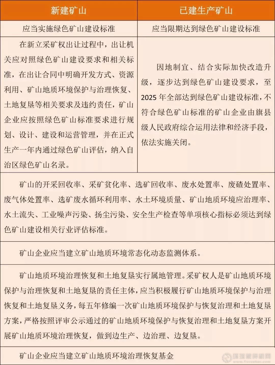 適用范圍:自治區行政區域內的綠色礦山建設、評估、名錄管理、綠色礦山評估專家及第三方評估機構管理等工作。
