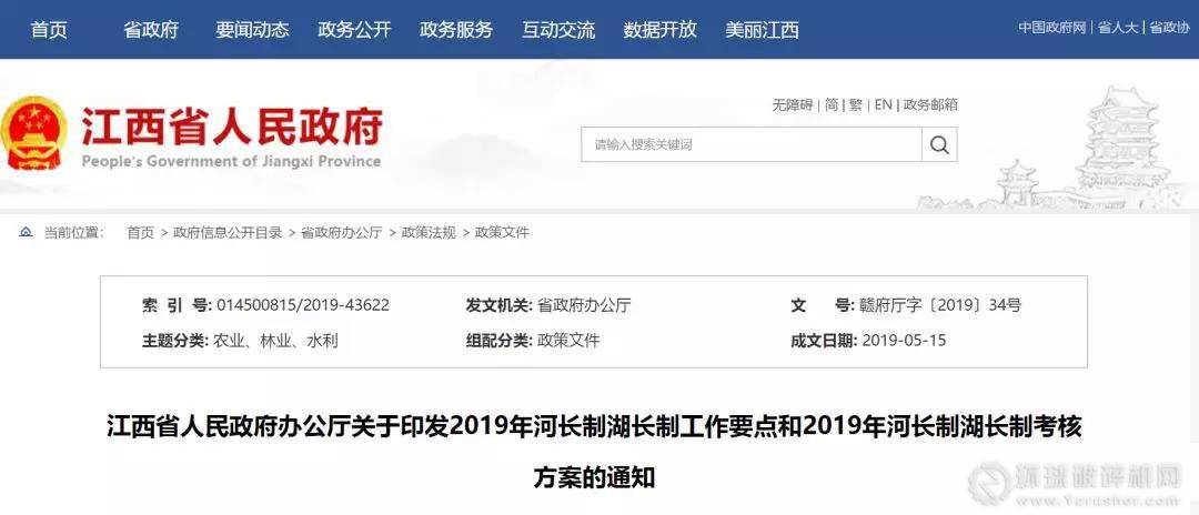 近日,江西省人民政府印發《2019年河長制湖長制工作要點》(以下簡稱要點)和《2019年河長制湖長制考核方案》,《要點》第16條要求如下: