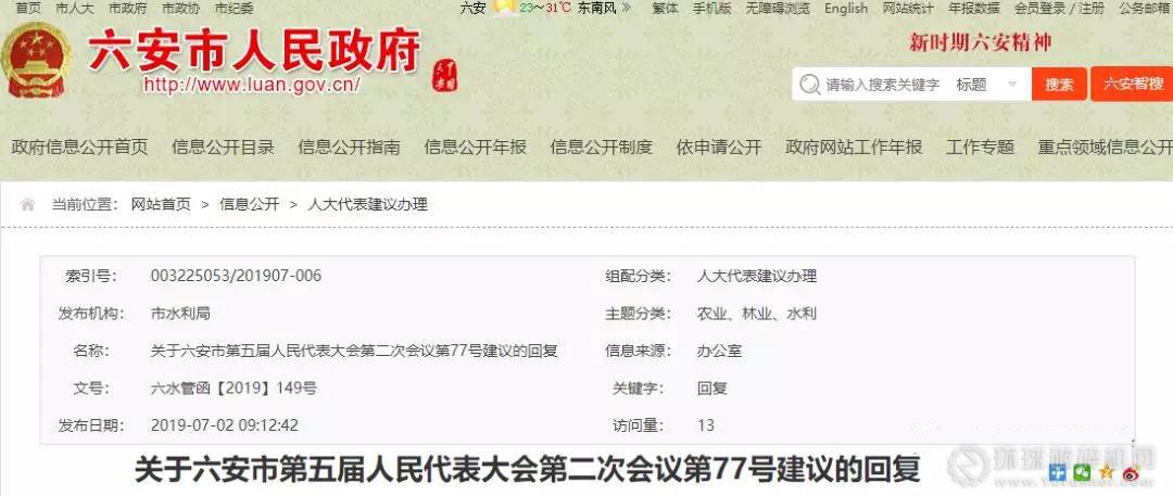 六安市水利局在回復文件中介紹了淠河河道采砂管理情況和建議辦理落實情況。六安市水利局指出:
