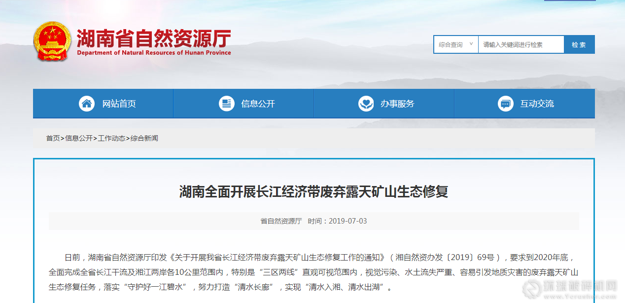 為打造“清水長廊”,實現“清水入湘、清水出湖”,省自然資源廳日前印發《關于開展我省長江經濟帶廢棄露天礦山生態修復工作的通知》,要求到2020年底,全面完成全省長江干流及湘江兩岸各10公里范圍內,有視覺污染、水土流失嚴重、容易引發地質災害的廢棄露天礦山生態修復任務。全面開展長江經濟帶廢棄露天礦山生態修復,要求到2020年底完成相關工作,并與山水林田湖草生態保護修復工程等有機結合。