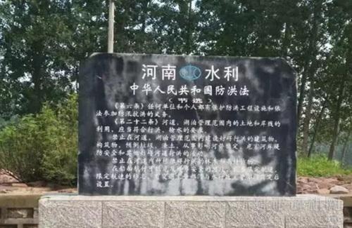 同樣還有另一塊石碑:“中華人民共和國防洪法(節選):《第六條》任何單位和個人都有保護防洪工程設施和依法參加防汛抗洪的義務。《第二十二條》禁止在河道,從事影響河勢穩定,危害河岸堤防安全和其他妨礙河道行洪的活動.....”