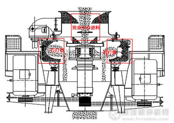 3、沖擊式制砂機的完全中心進料和中心進料伴隨瀑落進料有什么區別?