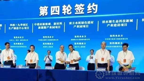 日前,2019湖南與央企對接合作大會在長沙舉行。湖南省湘鄉市委副書記、市長周俊文出席第四輪簽約儀式,并代表湘鄉市人民政府與湖南南方水泥集團有限公司簽訂南方水泥綠色建材產業園項目。據中國砂石協會和中國砂石骨料網了解,該綠色建材產業園項目總投資約20億元,產業包括:年產200萬噸骨料生產線+日產7500噸熟料生產線+裝配式建筑生產基地。
