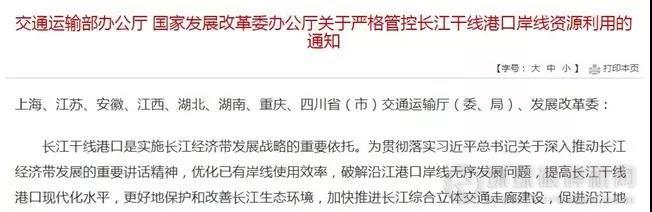 此外,《通知》還要求嚴格管控新增港口岸線,嚴控港口岸線總規模,嚴控工