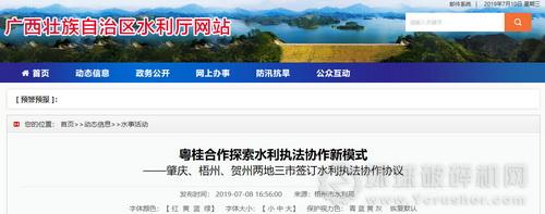 肇慶、梧州、賀州粵桂三市簽訂《水利執法協作協議》,共同規范管理西江流域水利執法行為。對兩地三市西江流域涉及德慶、封開、懷集、蒼梧、藤縣、昭平、八步等縣(市、區)的水行政執法部門建立聯絡員制度、聯席會議制度、執法資源信息共享機制等,積極開展聯合執法行動,創新協作方式。