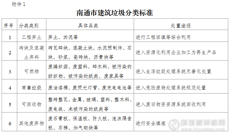 南通市人民政府發(fā)布關于加強城市建筑垃圾管理促進資源化利用的意見,到2020年,全市各類工程產生的建筑垃圾基本實現(xiàn)分類處置,南通市區(qū)建筑垃圾資源化利用率達70%以上、各縣(市)城區(qū)達60%以上,在全省高質量發(fā)展建筑垃圾專項考核中位居前列。全文如下: