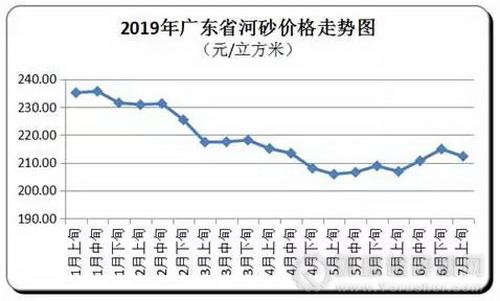據廣東省發改委價格監測中心監測, 2019年7月上旬,廣東省砂石、混凝土價格波動不大。在當前河道環境嚴格整治的大背景下,砂石市場省內供給受限,省外供應受運輸距離、物流成本等諸多不確定因素影響,供需關系有所緊張,預計7月中旬廣東省砂石、混凝土價格維持偏強走勢。