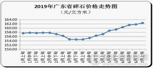 7月上旬,廣東全省碎石平均購進價為每立方米162元,環比上升0.41%。其中,粵北和珠三角地區碎石均價每立方米分別為134元和179元,環比分別上升0.21%和0.87%;粵東和粵西地區碎石均價每立方米分別為189元和142元,環比均持平。