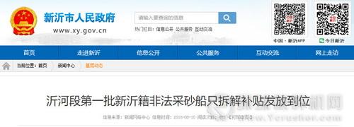 本次補貼發放嚴格按照《新沂市駱馬湖、沂河采砂船只處置方案》進行。截止至2018年8月初,船只處置組已經全面集中清理了沂河滯留非法采砂船只。