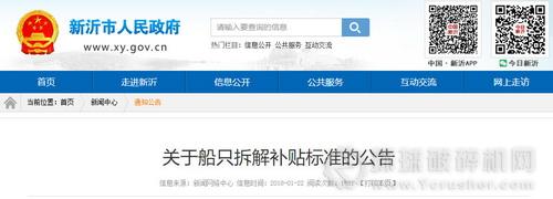 新沂市駱馬湖沂河采砂船只處置工作領導小組辦公室發布《關于船只拆解補貼標準的公告》