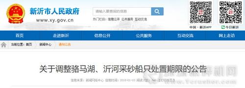 新沂市黃砂禁采指揮部發布《關于調整沂河采砂船只處置期限的通知》