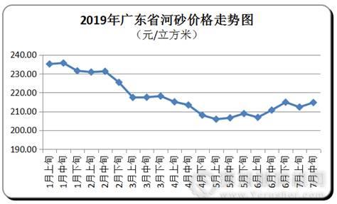 7月中旬,廣東省河砂平均購進價為每立方米215元,環比上升1.14%(與2019年7月上旬相比,下同)。其中,粵東和珠三角地區購進價分別為每立方米217元和204元,環比分別微降0.19%和0.08%;粵北地區購進價為每立方米219元,環比上升3.34%;粵西地區價格環比持平。